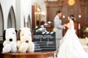 チャペルの祭壇で指輪交換のセレモニー風のお写真も。実際に挙式を行う空間だからこそ、お写真だけでもまるでお式をしたような雰囲気で楽しんでいただくことができます。
