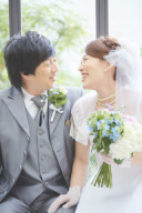 今回のご新婦様はAラインのドレスをチョイス♪ご新郎様のタキシードも明るいお色で爽やかな印象ですね♪
