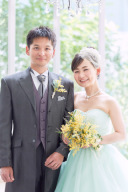 背景のグリーンと、白い和装が爽やかな印象を作り上げます!