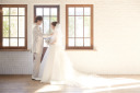 純白ドレスと真白なユリのブーケは相性が抜群。ブーケ見つめる仕草は女性のラインを綺麗に見せるポージングでとてもオススメです♪