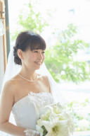 全身の写真を撮影したときに、裾広がりになるAラインのドレスは写真映えもバッチリ!アイボリーのタキシードもとても爽やかですね♪