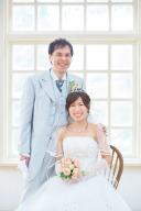 お子様は一旦休憩でお二人のカットをお撮影!白無垢に白色の紋付き袴は爽やかな印象ですね♪