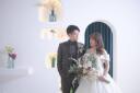 シンプルなスタジオだからこういうお花も映えますね!お花が似合うお二人も素敵です!