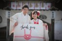 和装の次はウェディングドレスに着替えて撮影!小物を使ってウェルカムボード用に使えるショットを撮りました。