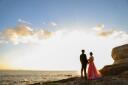 夕日と灯台をバックにオシャレなバック(背中)ショットをお撮りさせていただきました。雰囲気がすごく良い感じです。