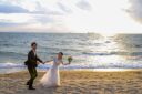 夕日と灯台をバックにオシャレなバック(背中)ショットをお撮りさせていただきました。雰囲気がすごく良い感じです。