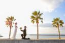 夕日と灯台をバックにオシャレなバック(背中)ショットをお撮りさせていただきました。雰囲気がすごく良い感じです。