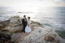 少し照れくさそうに、でもとても幸せそうなお二人。お互いに寄り添い、遠くの海を眺める姿が、これからの未来を表しているようでした。