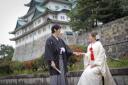 ご新郎様の背中にぴたっと寄り添うご新婦様。カチッとしたポーズだけでなく、こうした遊び心のあるカットも撮影が楽しくなるポイントの一つですよ!