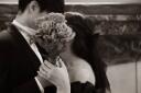 ご新郎様に身を預けるご新婦様の幸せそうな表情が印象的です。夕暮れ時の柔らかな光がお二人を包み、撮影の緊張もすっかり解けて自然な体温が伝わります。