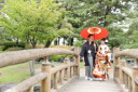 続いては橋での撮影!番傘もいい感じに映えていますね!