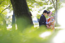 縁側に腰かけて撮影しました。東山荘は和室とお庭の両方とも撮影できる当店人気スポットです♪