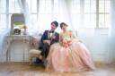 プランについてくる和傘を持って、鼻と鼻の頭をくっつけて、ロマンティックなお写真を。