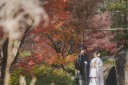 秋めいた日本庭園をバックに