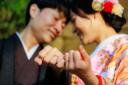 背景の緑と、お二人の和傘がとても鮮やかで。お二人の個性が光る、素敵な一枚になりました。