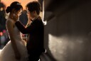 ご新婦様がそっとご新郎様の胸元に手を添える仕草。二人の繊細な愛が伝わる、心温まる一枚です。 (ブライダル、ブーケ、愛し合う二人、心温まる)