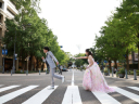 次の撮影スポットに向かう途中のおふたり!楽しい雰囲気が伝わってきますね