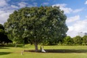 緑をバックに見つめ合う二人のシーン