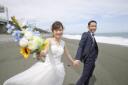 オシャレにカラードレス&タキシードで城ヶ島ロケーション撮影