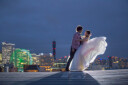 空の色が変わりゆく中での撮影。お二人のシルエットが夕日の光に溶け込み、言葉にしなくても想いが伝わるような、趣のある一枚になりました。