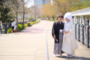 芝生の上でお二人の純白な衣装がとても映えます♪仲が良さそうなワンシーン☆