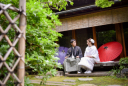 こちらの庭園ではお茶室を借りての撮影が大人気です♡とくに縁側撮影は人気で、花嫁さまからオーダーを頂きます。