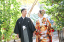最初に白無垢を和庭園で撮影♡背景をたくさん取り入れて撮影しました。