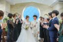 チャペルの外にもでてお撮影しました!白い和傘に光が入ってとても綺麗ですね✨