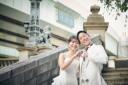 イルミネーションの輝く教会前でお撮りしました!冬の時期の撮影はイルミネーションが点灯しているので夜でも華やかです。