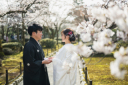 スタジオに戻って白無垢に変更。正座ポーズを撮りましたが、お2人は面白い事を考えますね、紙風船をカメラマンに投げています。面白い!