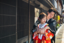 ひがし茶屋街で白無垢。街並みの色と調和していますね。今度は寄り添って同じ方向を見つめながら。カメラマンは同じ方向を見る時は二人で相談して同じ看板みてね~と。