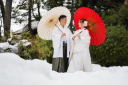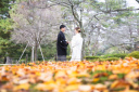 衣装替えをして、兼六園へ。園内は桜がとても美しく、新郎新婦様を楽しませてくれました。花見をしながらの撮影です。