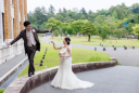 衣装替えをして、兼六園へ。園内は桜がとても美しく、新郎新婦様を楽しませてくれました。花見をしながらの撮影です。