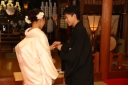 挙式が無事終わり色打掛で集合写真とロケ撮影をしました。この後披露宴の撮影もさせて頂きました