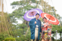 橋の上で和傘を持って楽しい雰囲気で撮らせていただきました。大げさにするほどいい写真になります!トライしてみてください!