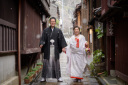 和装は後ろ姿も素敵です。手をつないでお互いを見ていただいてます。仲の良さが伝わってきますね。