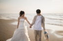 自然な感じで歩くだけでも様になるのがドレスの良い所です。見つめ合ったり、お話ししたりナチュラルなシーンは色々撮影しています。