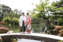 打掛は山本寛斎の逸品。最高にお似合いでした。後ろ姿でも仲の良さが伝わってきますね!