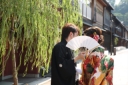 東茶屋街での撮影です。後ろの木は柳です。葉っぱが茂ってくるととても素敵な写真が撮れます。ここはお勧めスポットです