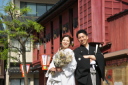 浅野川で人力車に乗って走るのは気持ちがいいです。新郎様はちょっと人力車を引いてみたいと言われたので撮影しました。