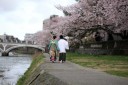 満開の桜並木を人力車で走ります。非日常を味わっていただきます。風が強かったので桜が舞っていました。