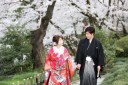 満開の桜で撮影出来て本当に良かったですね。新婦様はお天気を心配されていたのでお天気が最高で何よりです。