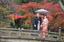 11月の兼六園は紅葉がとても美しいのでロケーション撮影の人気度が高いです。寒さ対策もバッチリしてます!