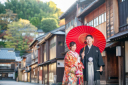 和装スタジオにて、番傘に映り込むお二人のシルエット撮影させていただきました。
