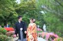 ことじ灯籠前にて綺麗なサツキとお撮りさせていただきました^^笑顔も素敵です。