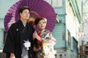 レンガ造りの建物をバックにプロポーズシーンをお撮りさせていただきました!