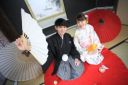番傘をお持ちいただき、霞が池をバックに素敵な雰囲気でお撮りさせていただきました。