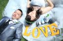 ご持参いただいた大きな「LOVE」の撮影小物を持ちながら。とても良い笑顔ですね!
