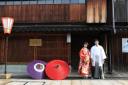 番傘を持ちながら