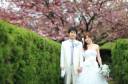 まだ僅かに残っていた八重桜をバックにフォトプロップスをお持ちいただいてお撮りした一枚。